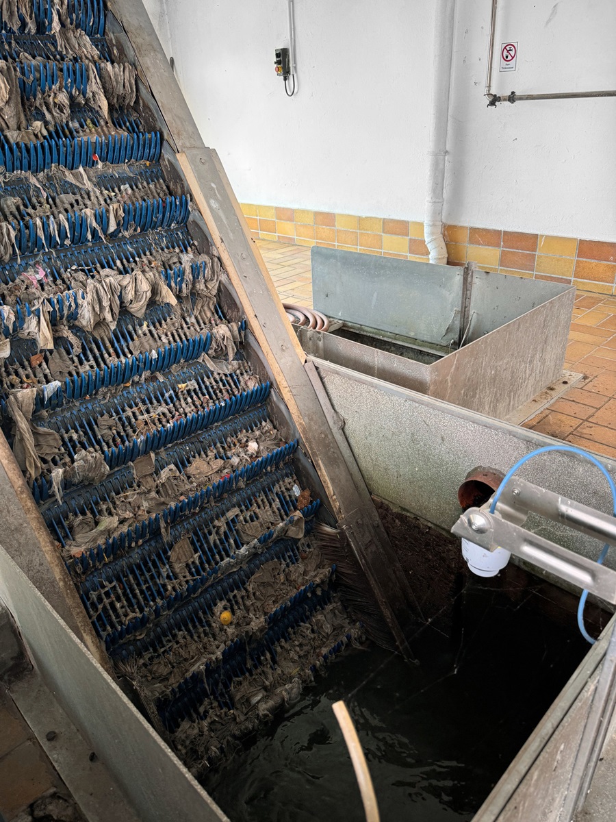 Für das Abschöpfen kleinerer Feststoffe ist der Feinrechen zuständig. Radarsensoren erfassen den Wasserpegel vor und hinter den Rechen.