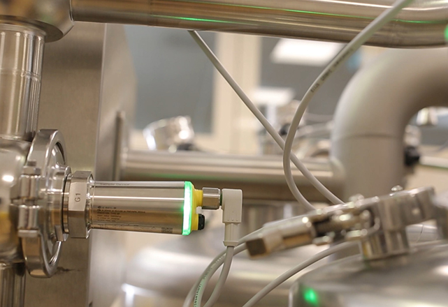 Konstruktiv zeichnen sich die Sensoren durch ihre frontbündigen Prozessanschlüsse und dichten, robusten Gehäuse aus (IP69K). Selbst im laufenden Betrieb können sie mit nahezu allen Chemikalien bis zu 2 h @ 150 °C CIP-gereinigt werden.