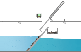 Über die Differenzmessung des Wasserpegels vor und hinter dem Rechen wird der Verschmutzungsgrad ermittelt und die Reinigung des Rechens initiiert.