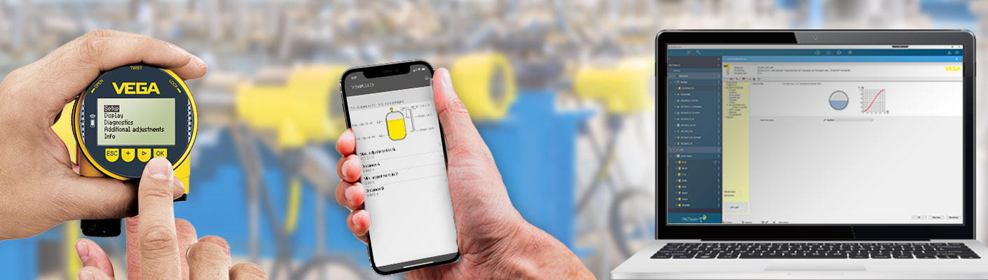 Die einheitliche Bedienstruktur ermöglicht eine einfache Montage, Inbetriebnahme und Konfiguration aller VEGA-Sensoren. Um einen Sensor in Betrieb zu nehmen, stehen mehrere Optionen zur Verfügung: