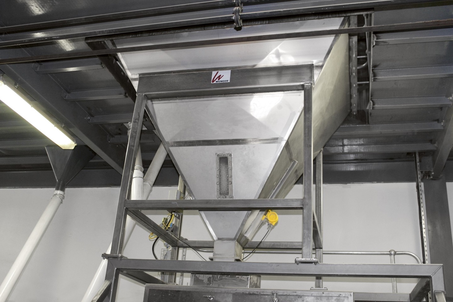 Die grundlegenden Schritte des Haustierfutterprozesses umfassen die Beschaffung von Rohstoffen, das Mischen über ein Dosiersystem, indem wichtige Vitamine und Nährstoffe zugesetzt werden, das Mahlen auf eine bestimmte Spezifikation und Größe und anschließend die Vermischung. Im nächsten Schritt wird das aufbereitete Produkt pneumatisch über eine Förderleitung der Extrusionsanlage zugeführt. Dort werden Dampf, Wasser und andere Zutaten hinzugefügt, um viele verschiedene Formgrößen und Mischungen von Tierfutter herzustellen.