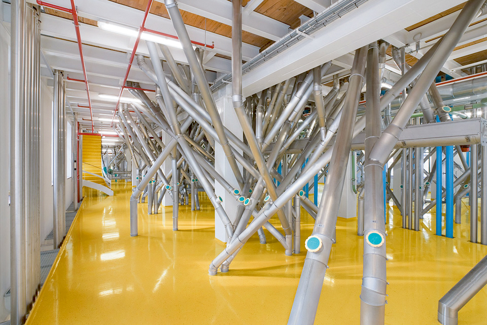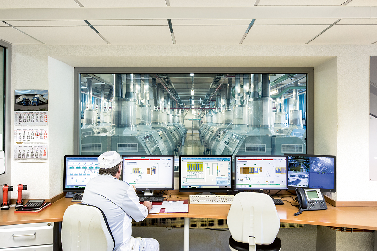 Der Rohrboden dient dazu, die Zwischenprodukte den Walzenstühlen zuzuführen. Jeder Prozessschritt wird während der Verarbeitung erfasst.