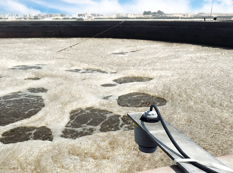 Gerade diese Eigenschaften prädestinierten sie für die Anwendung in der Abwasserbehandlungsanlage der Molkerei Al Rawabi Dairy. Dort geriet die bisher eingesetzte Füllstandmessung, die als Überfüllsicherung eingesetzt wurde, schnell an ihre Grenzen. Vor allem der Schaum, aber auch Hitze durch die Sonneneinstrahlung (immerhin befindet sich die Anlage mitten in der Wüste), Kondensat und Turbulenzen durch die riesigen Rührwerke am Tankboden bereiteten den Messgeräten Schwierigkeiten. So lieferte nicht nur die Ultraschallmessung unzuverlässige Werte, sondern auch die daraufhin eingesetzten hydrostatischen Sensoren mussten immer wieder wegen des schweren Schlamms am Boden gereinigt werden.
