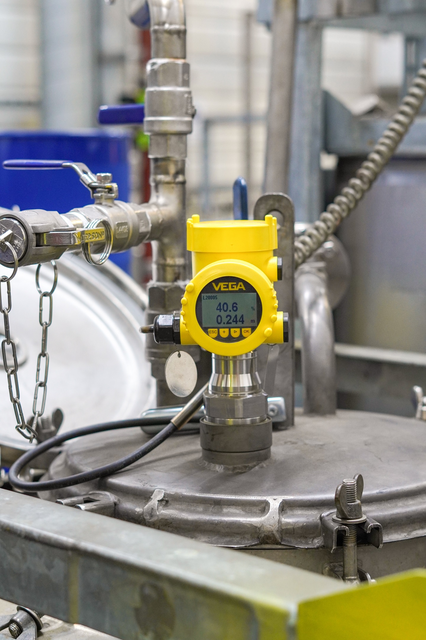 Der VEGAPULS 6X liefert an vielen verschiedenen Tanks präzise Messdaten zum Füllstand. Im Außenbereich der MMA-Anlage beispielsweise erfasst der Sensortyp die Füllstände von zwei jeweils 30 Kubikmeter großen Tanks, in denen das fertige Produkt bis zum Versand lagert. Sobald der Radarsensor meldet, dass einer der Tanks fast voll ist, wird das Produkt final auf seine Qualität geprüft, in Fässer abgefüllt und versandt.