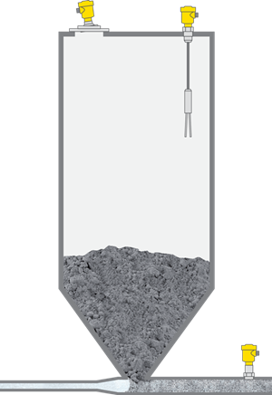 在进一步加工之前,水泥会被贮存在高大的筒仓中, 再借助压缩空气经气力输送管道送出。为了实现经济的仓储,必须对水泥仓进行料位测量及限位检测。此外,输送管的压力也需要得到监测。