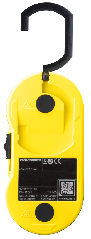 转接器,用于将可通信的 VEGA 设备与台式电脑或笔记本电脑的 USB 接口相连接,需安装 PACTware 调试软件。